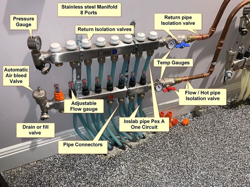 Manifold: central location of all the circuit pipes in the concrete slab.